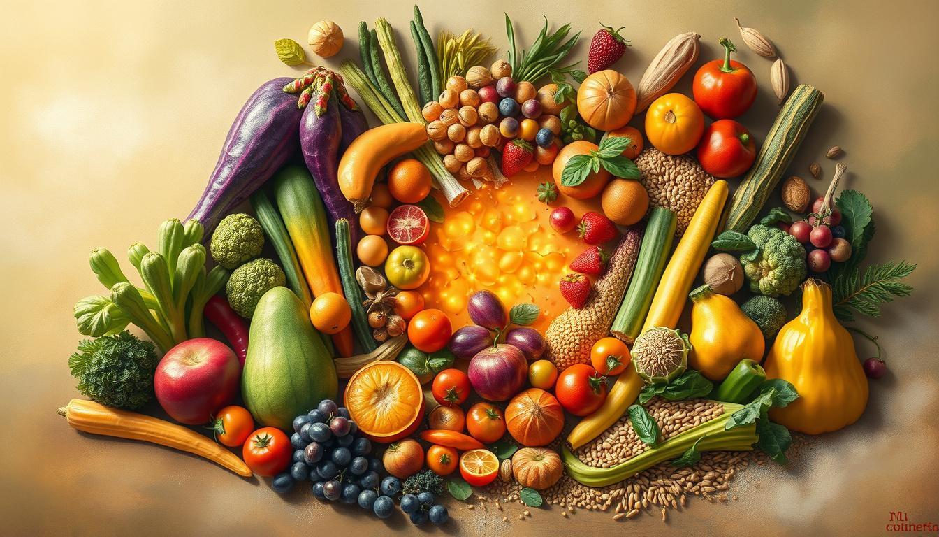 - Vitamina A: para a visão e imunidade (encontrada em cenoura, batata-doce e espinafre)